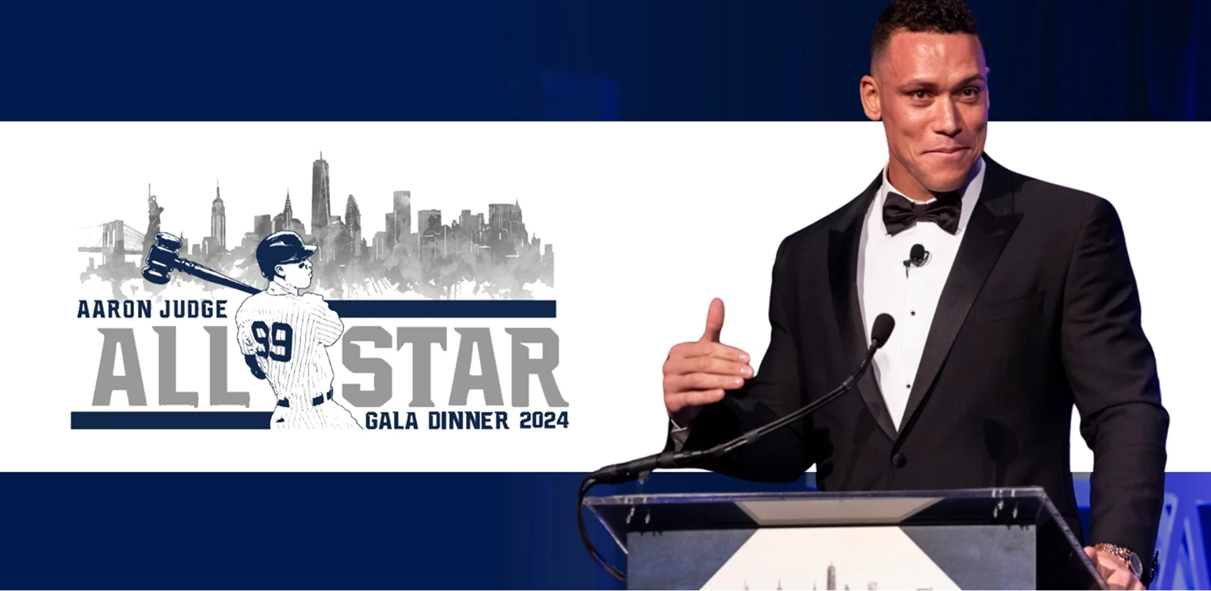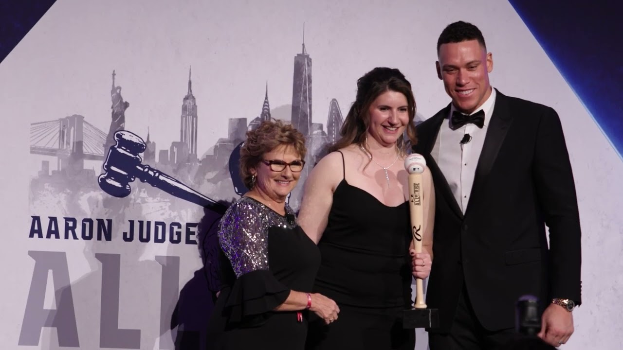 It was a perfect evening in New York City for the 2nd Annual All-Star Evening – New York Gala. The soiree was held at Cipriani Wall Street in New York City. The architectural design of Cipriani Wall Street created an elegant backdrop for the guests which included professional athletes, leaders in the sports world, family, friends, and fans. Dressed in their finest cocktail attire, guests enjoyed passed hors d’oeuvres, a delicious meal, and strolling through and bidding on the popular silent auction which included signed sports memorabilia from Aaron Judge and other professional athletes who support the Foundation. The program was energetic and informative, being led by MC’s Matt Soeth and Paul Loefler. Attendees also heard from Aaron, as well as Patty, his mom and President of the Foundation, sharing special stories about the work the Foundation continues to do. The live auction included several game-day experiences with Aaron, as well as the favorite, ‘Hey Aaron, can we have a catch?’ offering children the opportunity to play catch and have lunch with Aaron.