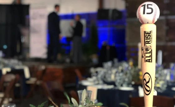 Rawlings created and donated ALL RISE customized table number bats on pedestals for “An All-Star Evening” at ENZO Olive Oil Mill in Madera. Thank you, Rawlings!