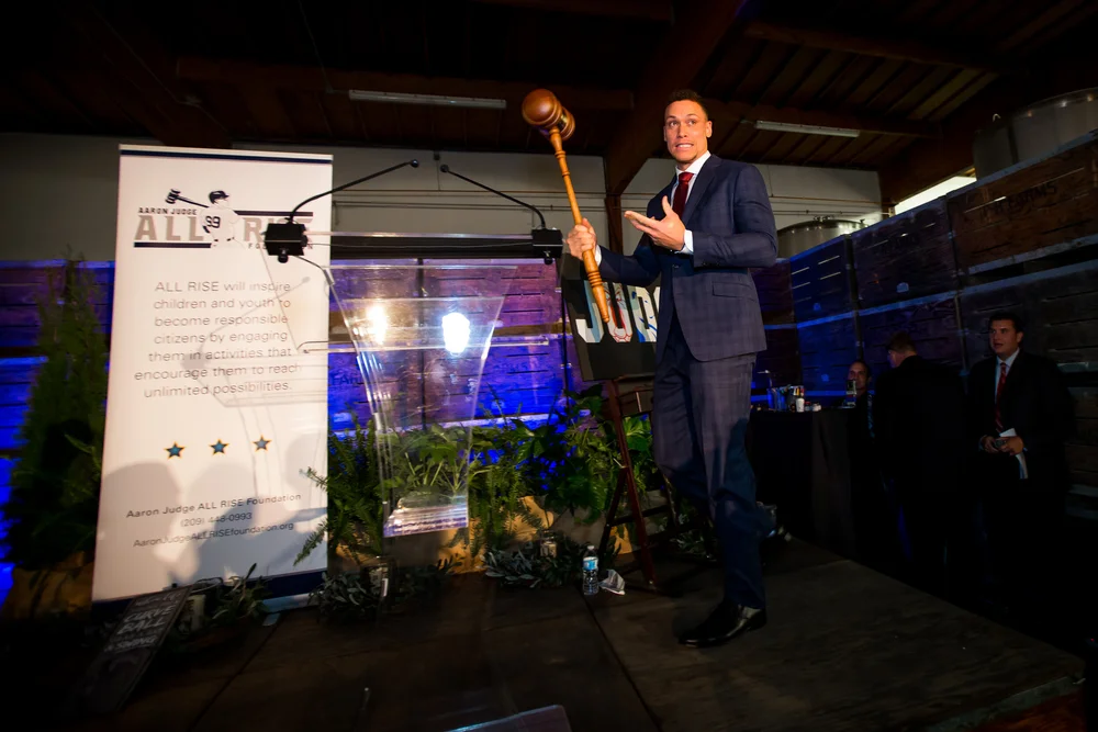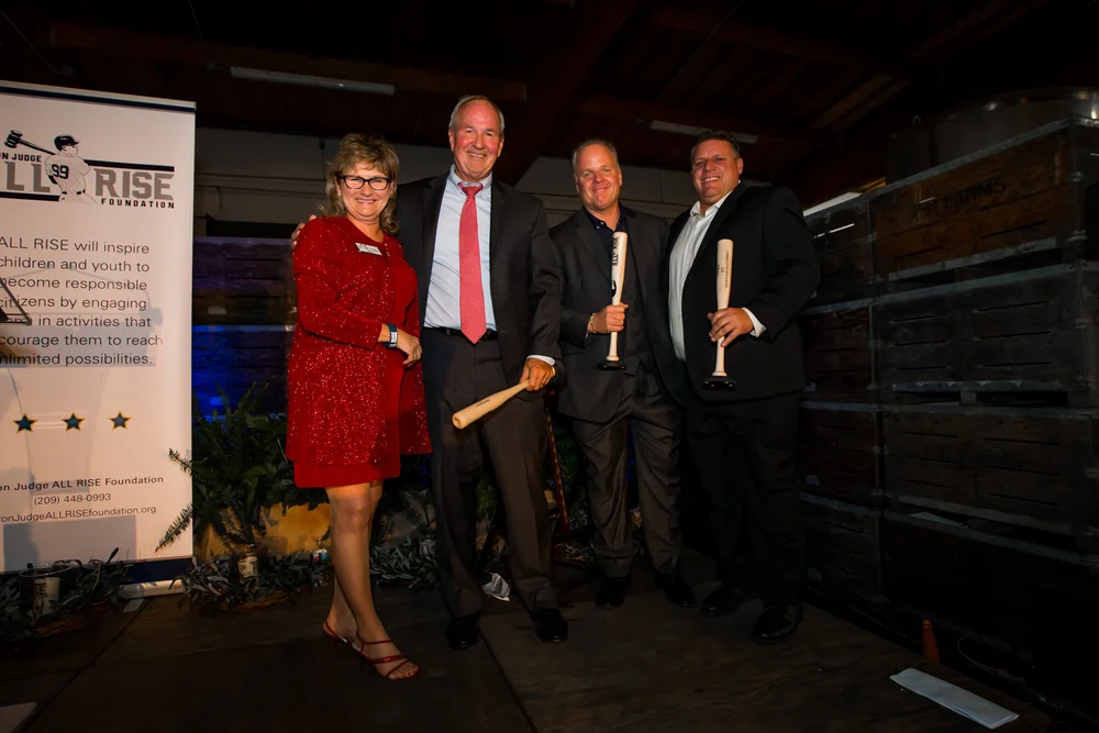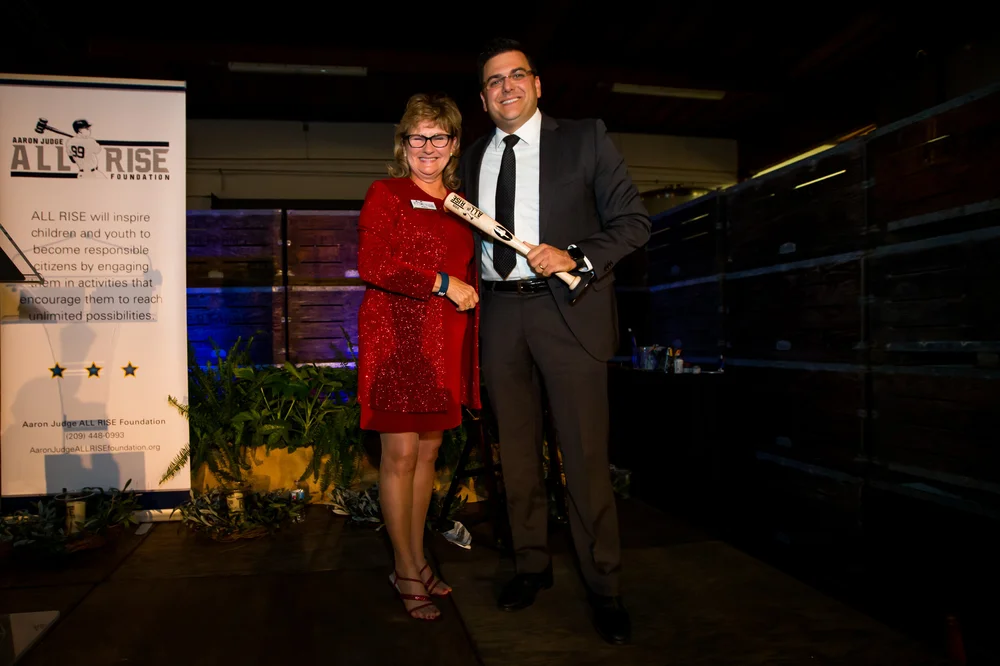 The ALL RISE Foundation’s second fundraising dinner was held near Aaron’s home away from home. The community of Fresno, California opened their arms to welcome Aaron in the Fall of 2010 when he began his college education and had the opportunity to compete as a college athlete for the Fresno State University Bulldogs baseball team. The Aaron Judge ALL RISE Foundation celebrated the community of Fresno and Fresno State by hosting “An All-Star Evening” on November 21, 2019, at the Enzo Olive Oil Mill in Madera, California. This was no small endeavor as this event took place in the middle of the Ricchiuti Family’s olive harvest. During the event, Tony Byrnes, artist extrodinare, along with Aaron created a “JUDGE” painting that was auctioned off along with other Judge memorabilia. MC’s Paul Loefler and Matt Soeth brought out the best of the crowd gathered and shared memories of Aaron as a Fresno Bulldog and more. Thanks to our generous sponsors below, we are excited to announce that our 2019 fundraising event exceeded our expectations and we are excited to continue the development of old and new friendships along with opportunities to support children and youth in Fresno County.
