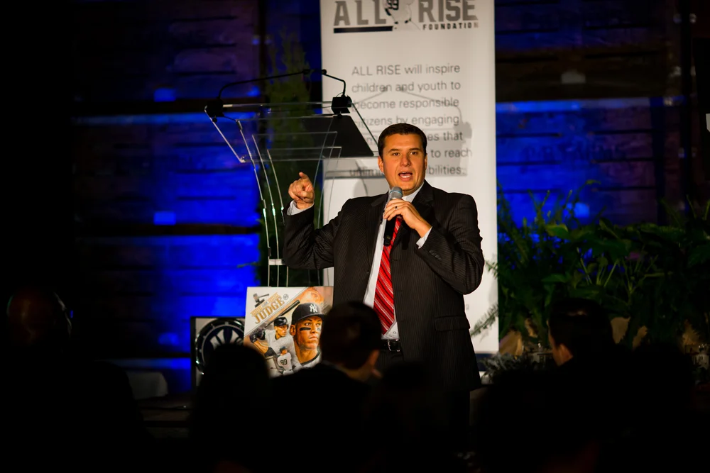 Our inaugural New York Gala brought a diverse group of supporters together to show their love for Aaron and his ALL RISE Foundation. The “All-Star Evening” was held at Cipriani 42nd Street in New York City on Friday, November 18. More than 450 guests, including sponsors, professional athletes, All-Stars, leaders in the sports industry, friends, and family enjoyed a beautiful evening of signature cocktails and desserts, fine dining, and a silent auction including signed sports memorabilia from Aaron and other professional athletes. A live auction included several experiences with Aaron, as well as the favorite “Hey Aaron, can we have a catch?” offering four children the opportunity to play catch and have lunch with Aaron. “Save it for the Judge”, moderated by Suzyn Waldman and Meredith Marakovits, gave guests a chance to ask Aaron a question about his career, Yankees experiences, and his journey to 62 and MVP. ALL RISE awards included a tribute to Harold Theurer, author of “Hey Dad, Let’s Have a Catch”, a Mom’s Choice Award winner, which is the foundation for the ALL RISE #Just5Minutes campaign to stress the importance spending time with children. #Just5Minutes! Several other awards were presented. See those honored on our website.