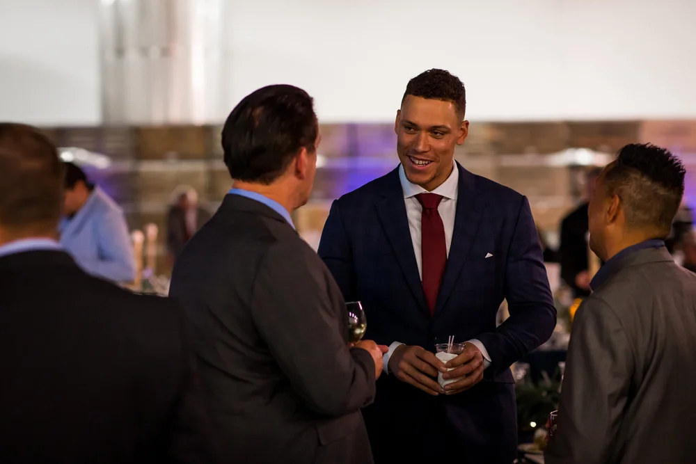 It was a perfect evening in New York City for the 2nd Annual All-Star Evening – New York Gala. The soiree was held at Cipriani Wall Street in New York City. The architectural design of Cipriani Wall Street created an elegant backdrop for the guests which included professional athletes, leaders in the sports world, family, friends, and fans. Dressed in their finest cocktail attire, guests enjoyed passed hors d’oeuvres, a delicious meal, and strolling through and bidding on the popular silent auction which included signed sports memorabilia from Aaron Judge and other professional athletes who support the Foundation. The program was energetic and informative, being led by MC’s Matt Soeth and Paul Loefler. Attendees also heard from Aaron, as well as Patty, his mom and President of the Foundation, sharing special stories about the work the Foundation continues to do. The live auction included several game-day experiences with Aaron, as well as the favorite, ‘Hey Aaron, can we have a catch?’ offering children the opportunity to play catch and have lunch with Aaron.