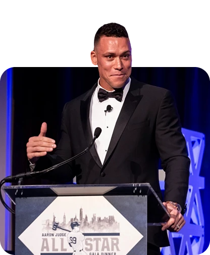 Our third annual All-Star Evening took place at Cipriani Wall Street, bringing together nearly 500 guests for a night of celebration and impact. Aaron Judge, his family, current and former Yankees, and special supporters gathered for VIP and general receptions, a silent auction, dinner, live entertainment from Bas, and a spirited live auction led by Aaron.